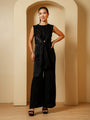 Step out in style with this sleek black jumpsuit, designed for a modern and confident look. Crafted from smooth satin fabric, it offers a comfortable fit with a touch of elegance. Perfect for parties, evening outings, and special occasions, this jumpsuit is a versatile wardrobe essential.